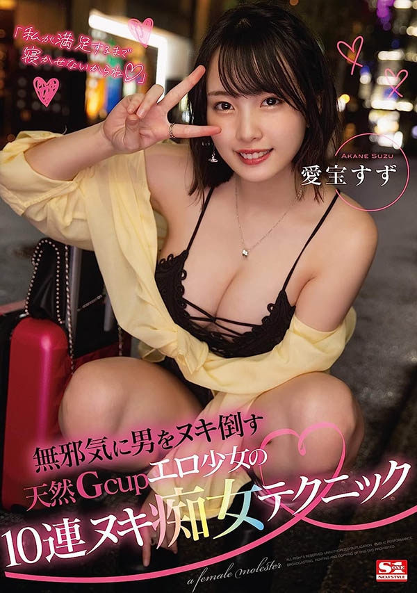 她应该是近来状况最奇怪的女优:首先,她是个等级很高的火辣Body,2022年1月,她在业界最顶尖的片商S1出道,主打的是18岁的新鲜肉体、绝对的透明感加上天然G罩杯,虽然很快就被抓到边拍AV边做风俗卖鲍鲍,但她的发片一直很正常,直到今年3月的这片『「私が満足するまで寝かせないからね」 无邪気に男をヌキ倒す天然Gcupエロ少女の10连ヌキ痴女テクニック』」: